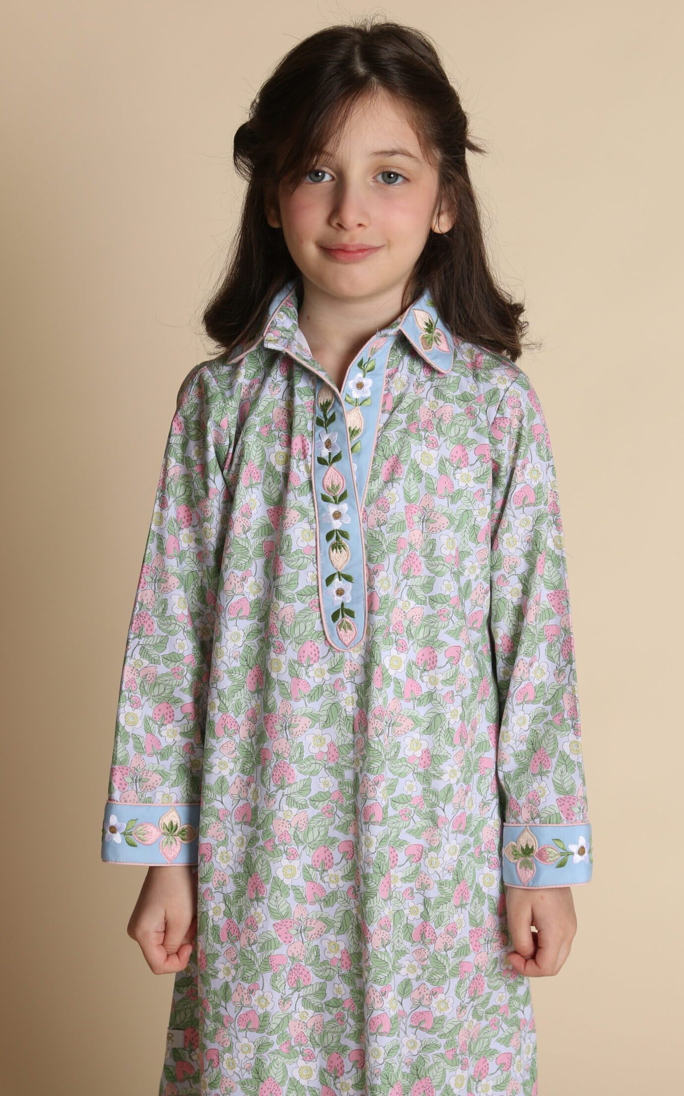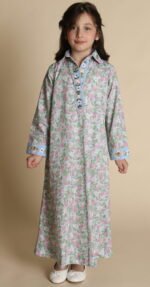 جلابية مغربية مكوّنة من قطعتين، مصنوعة من المخمل الفاخر مع قماش لِبرتي الناعم والخيوط المصنوعه يدوياً.